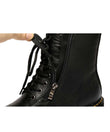 These remarkable chunky boots, inspired by the Marten style, are ideal for everyday attire, effortlessly enhancing dresses, skirts, and shorts. Equipped with a front zipper, these boots are easy to slip into, adding a daring and edgy flair to your outfit.